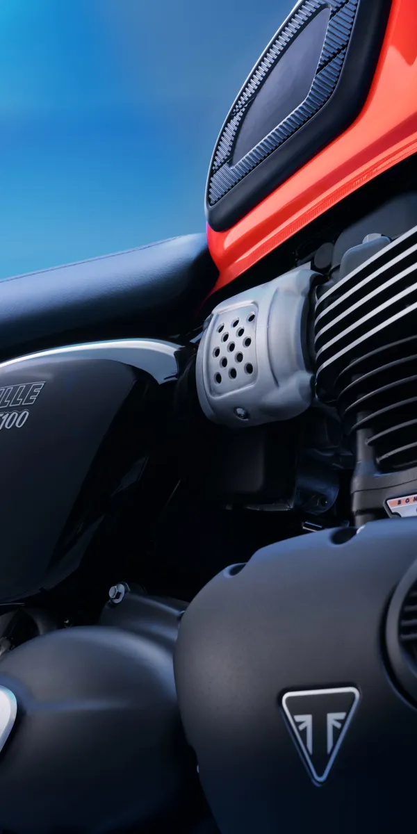 Kompakt og førerfokuseret teknologi, som inkluderer den nyeste generation af ABS og frakoblingsbar traction control – diskret integreret i T100’s klassiske udtryk.
