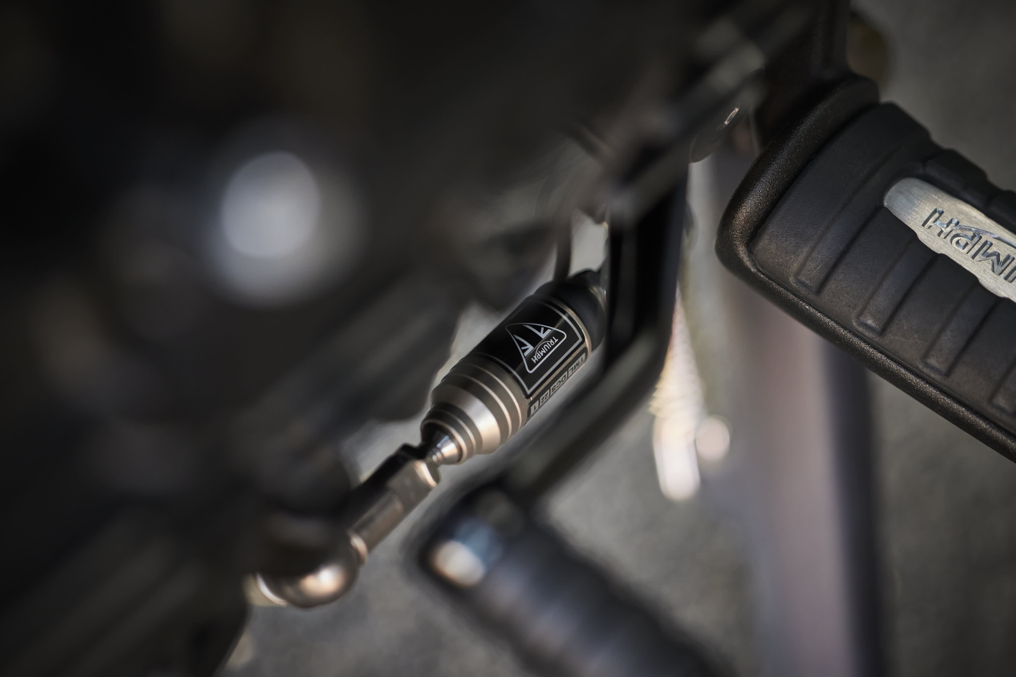 Fuldt justerbar Showa monoshock med piggyback-reservoir og fjernbetjent hydraulisk forspændingsjustering, 107 mm vandring