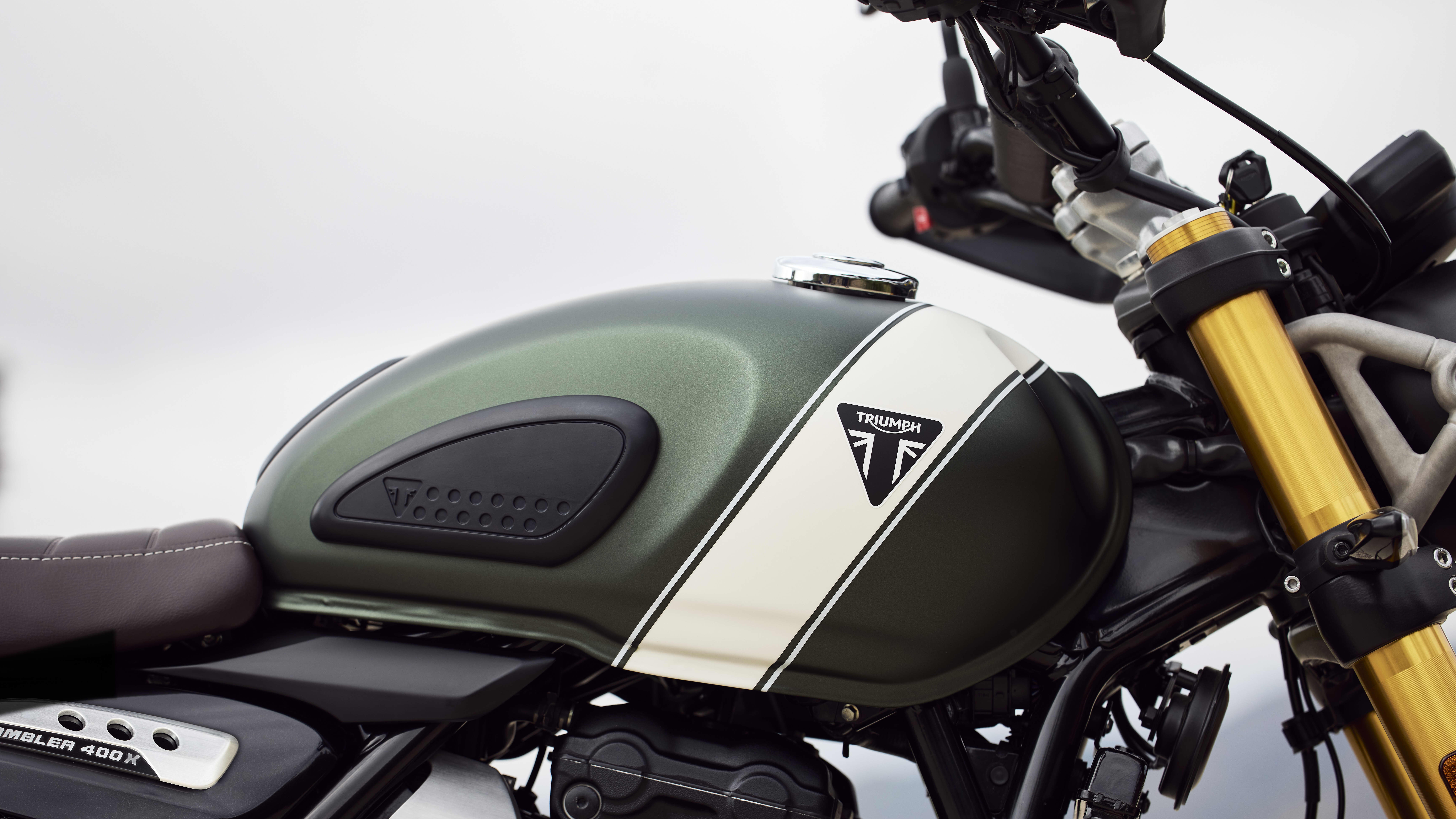 Klar til alle veje – med klassisk Scrambler-silhuet og Triumphs karakteristiske motorprofil. Fra hjulene og op oser Scrambler 400 X af ikonisk design-DNA.