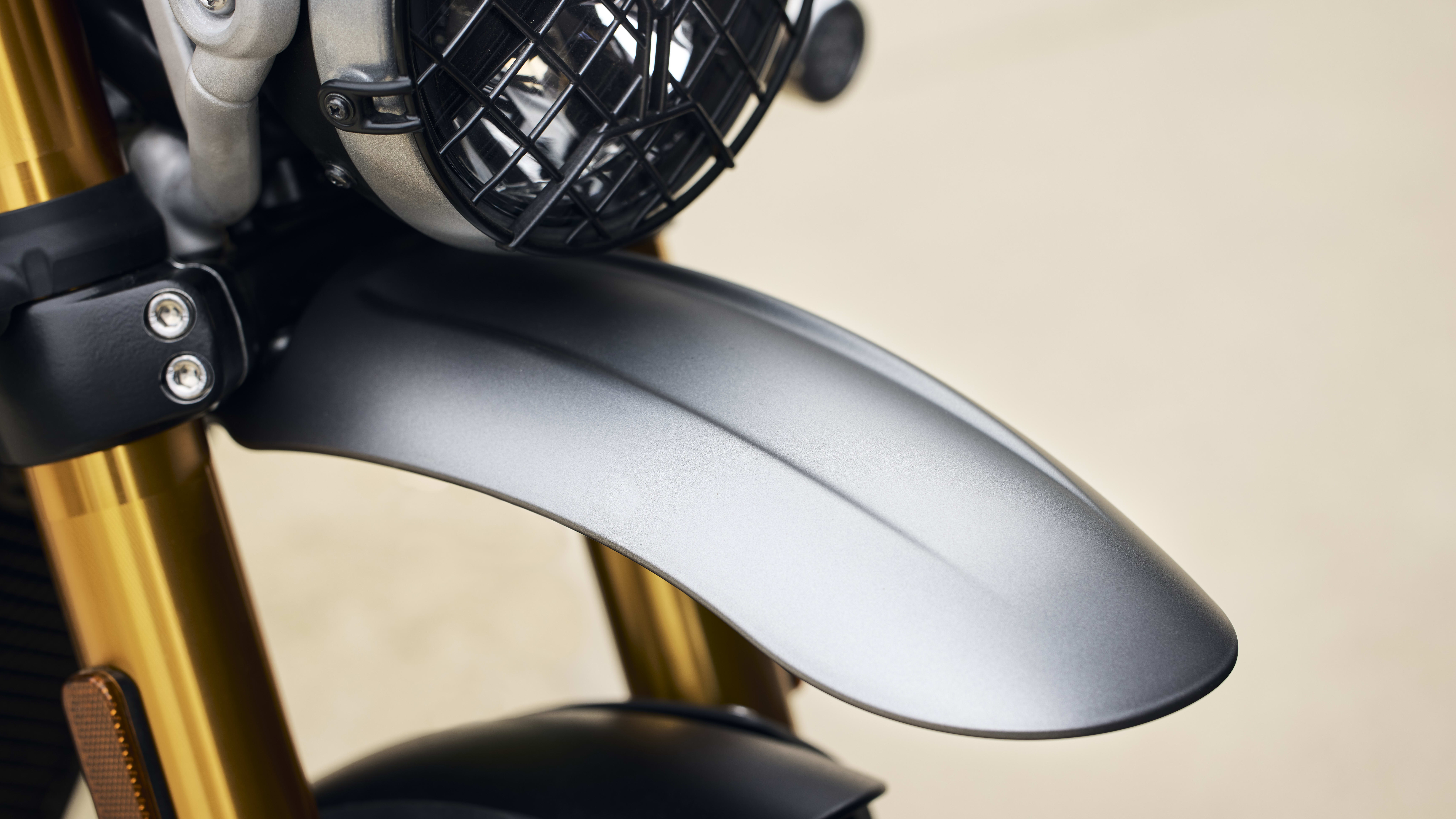 Scrambler-specifikt chassis og affjedring med 43 mm upside-down forgafler med stor stempel og justerbar monodæmper bag – for adræt og sikker håndtering på alle underlag.
