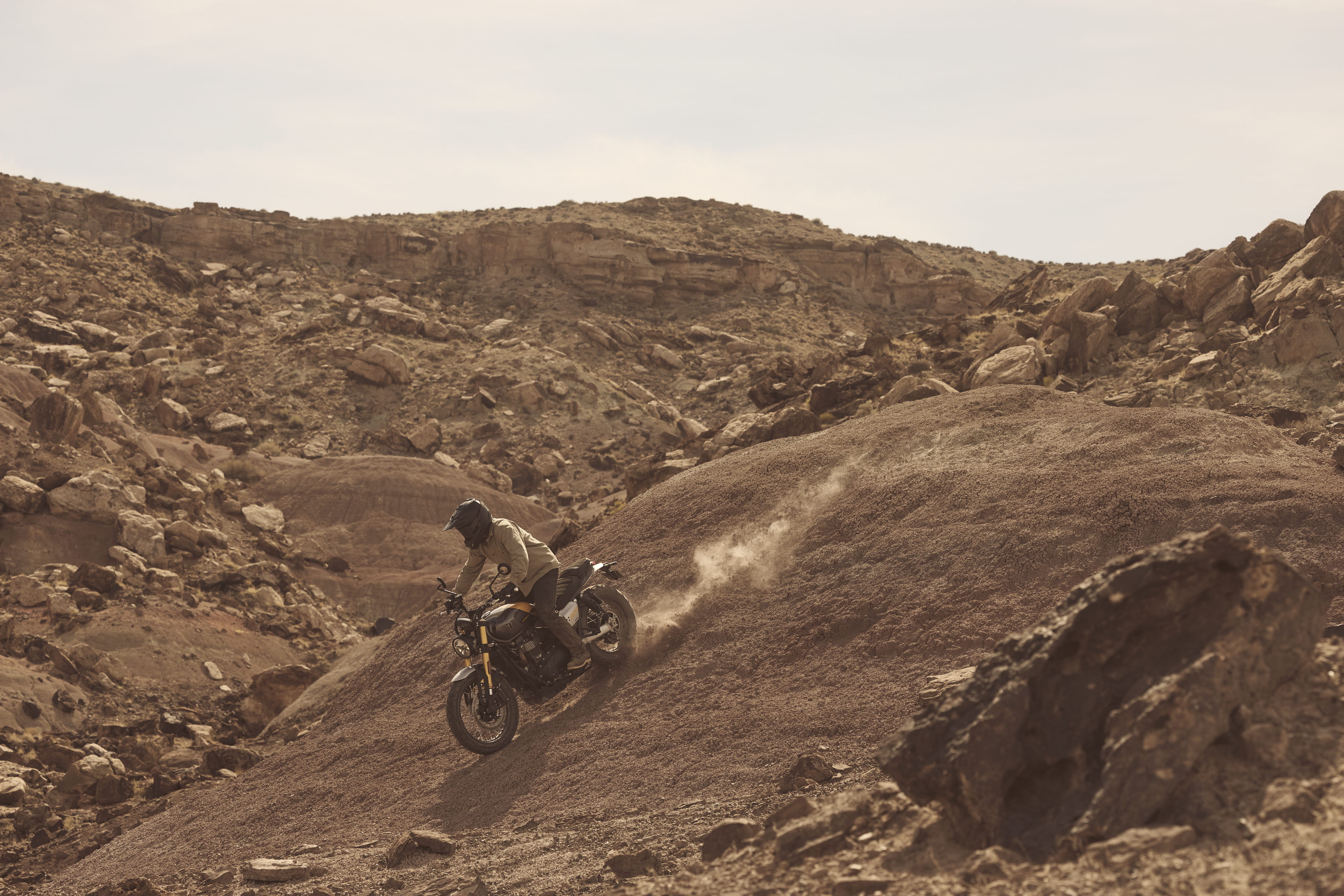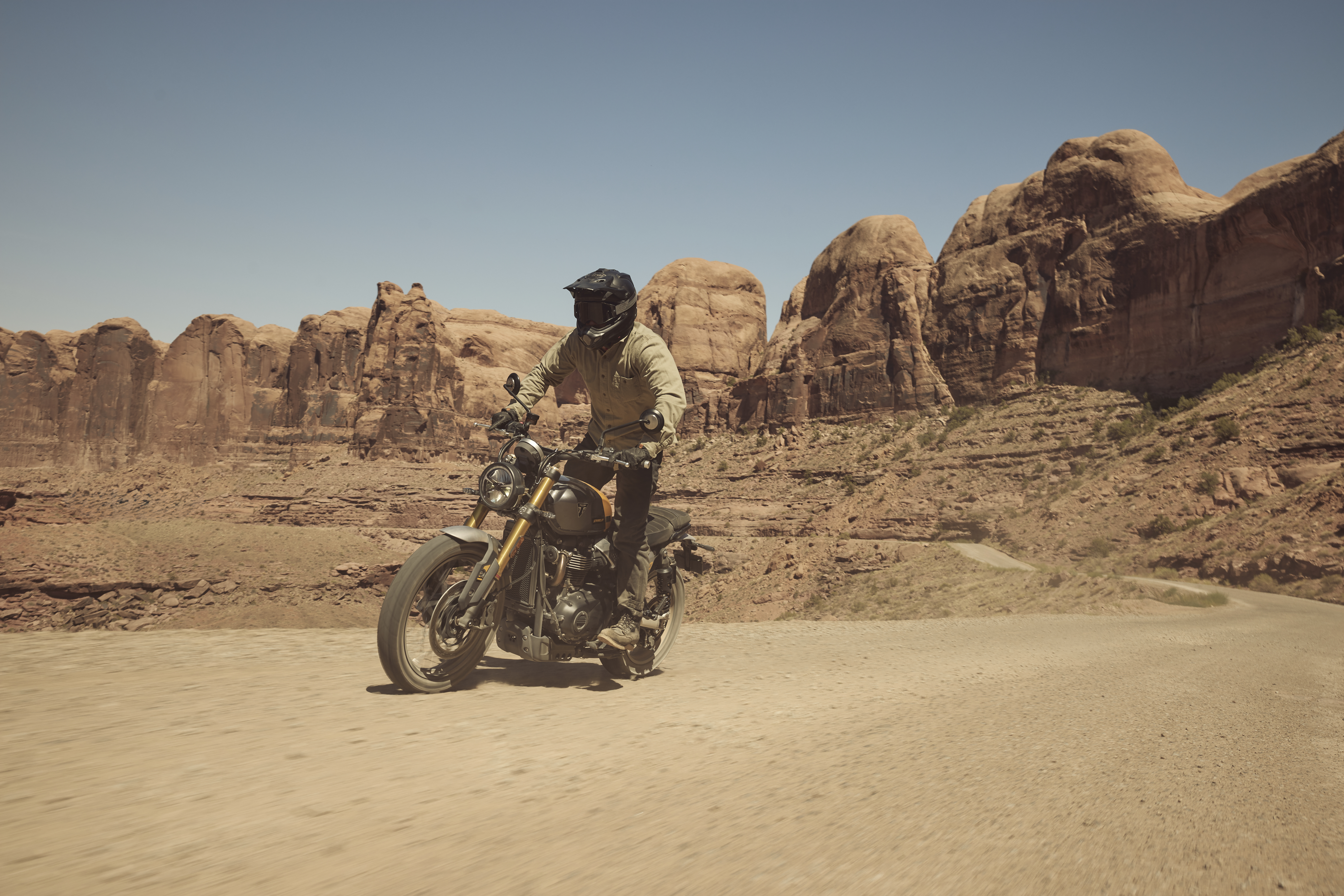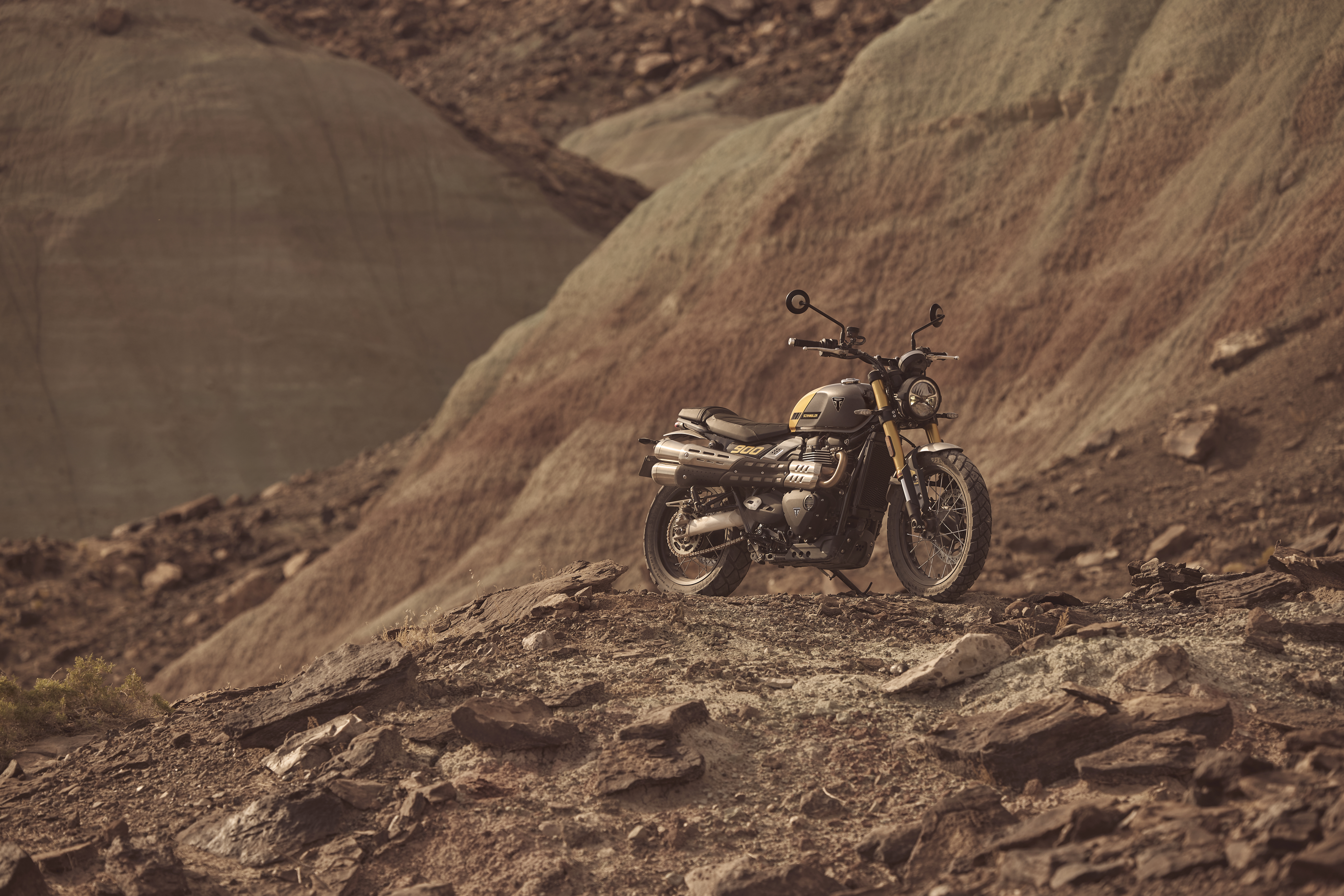 Den ikoniske Triumph Scrambler-silhuet med rene linjer og et råt, selvsikkert udtryk kombineres med minimal karrosseribeklædning og moderne finish. Designet er videreudviklet med endnu mere eksklusiv custom-stil, højere kvalitetsfornemmelse og gennemførte detaljer.