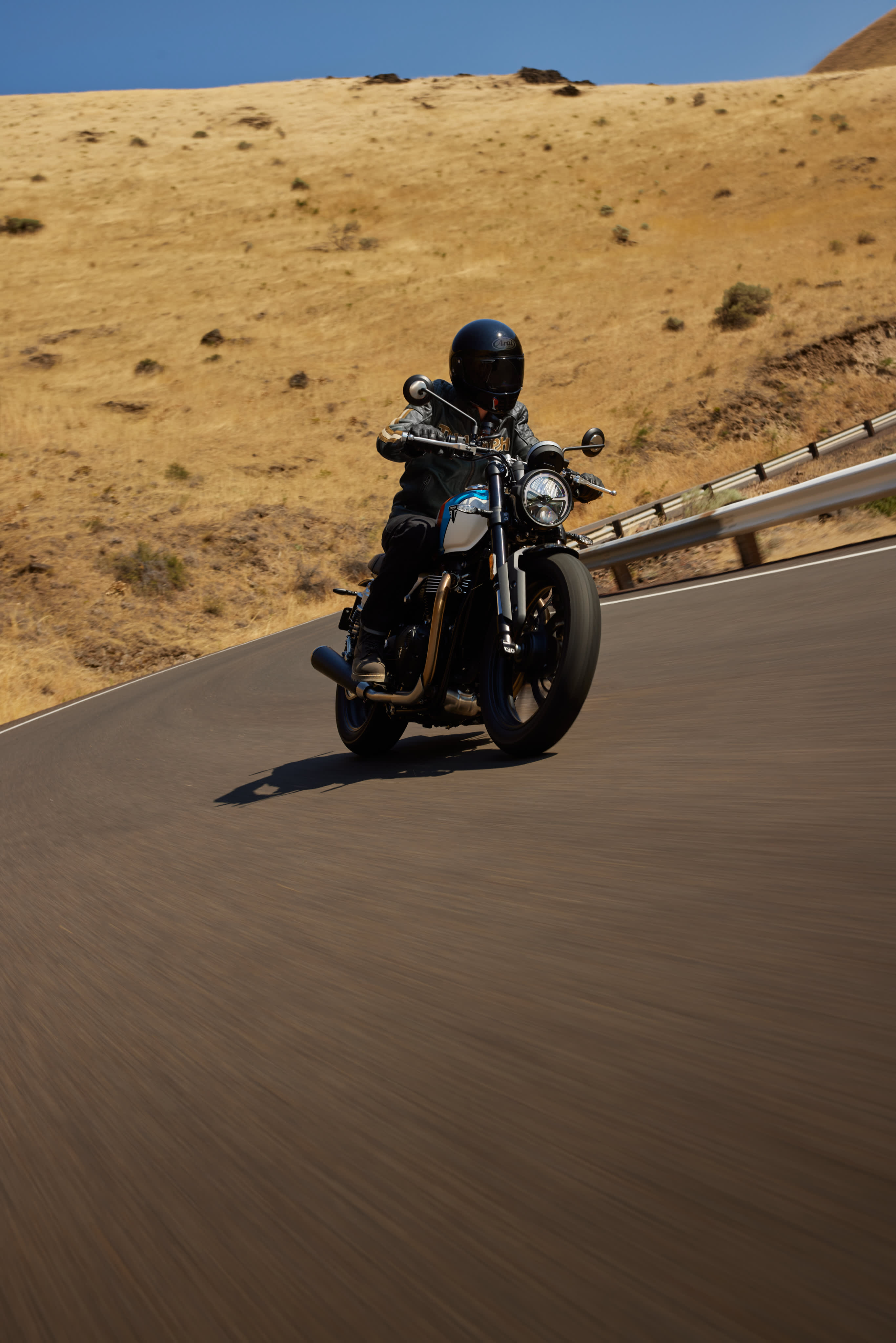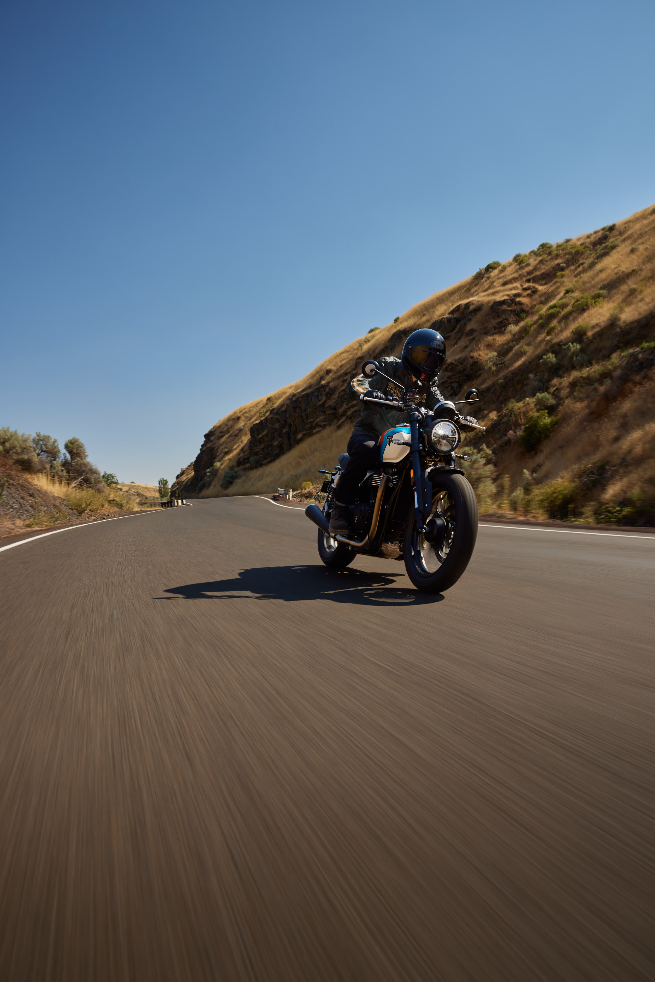 Speed Twin 900 fås også i en A2-kompatibel version med tilbehørskit. Den bevarer samme udseende, lyd og køreegenskaber – blot med lavere effekt, så nye førere også kan være med. Når A-kørekortet er i hus, kan begrænsningen fjernes, og motoren kører med fuld effekt – klar til næste kapitel.